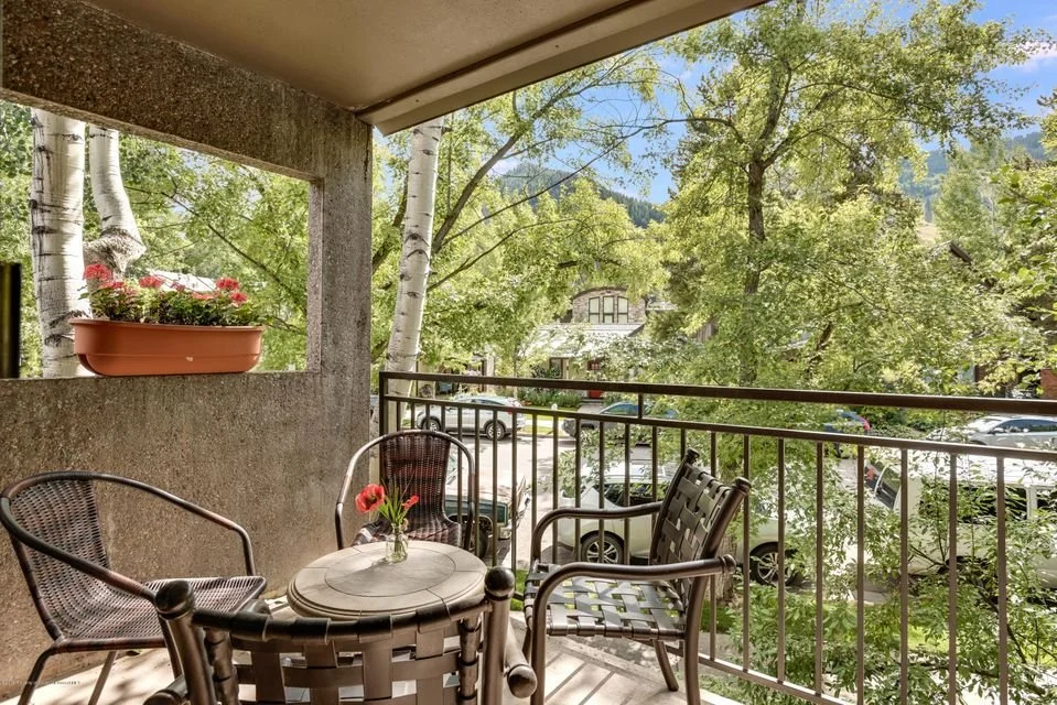 Rare opportunity to own this superb, 3 bedroom, two-level condo which boasts a coveted, top-floor, corner location and offers great views of Aspen Mtn. The entry-level is light and bright and consists of a private office/den, powder room, a comfortable living room with a cozy fireplace, a built-in dining area, and a well-appointed kitchen with stainless steel appliances and granite counters. The master suite and two guest bedrooms boast custom built-ins with tons of storage; all located on the upper level for maximum privacy and views. Decks on both levels allow for indoor/outdoor living surrounded by beautiful foliage in the summer. Located an easy walk to the Gondola & downtown Aspen and just across the street from Heron Park and the RF river. Beautifully finished and move-in ready!