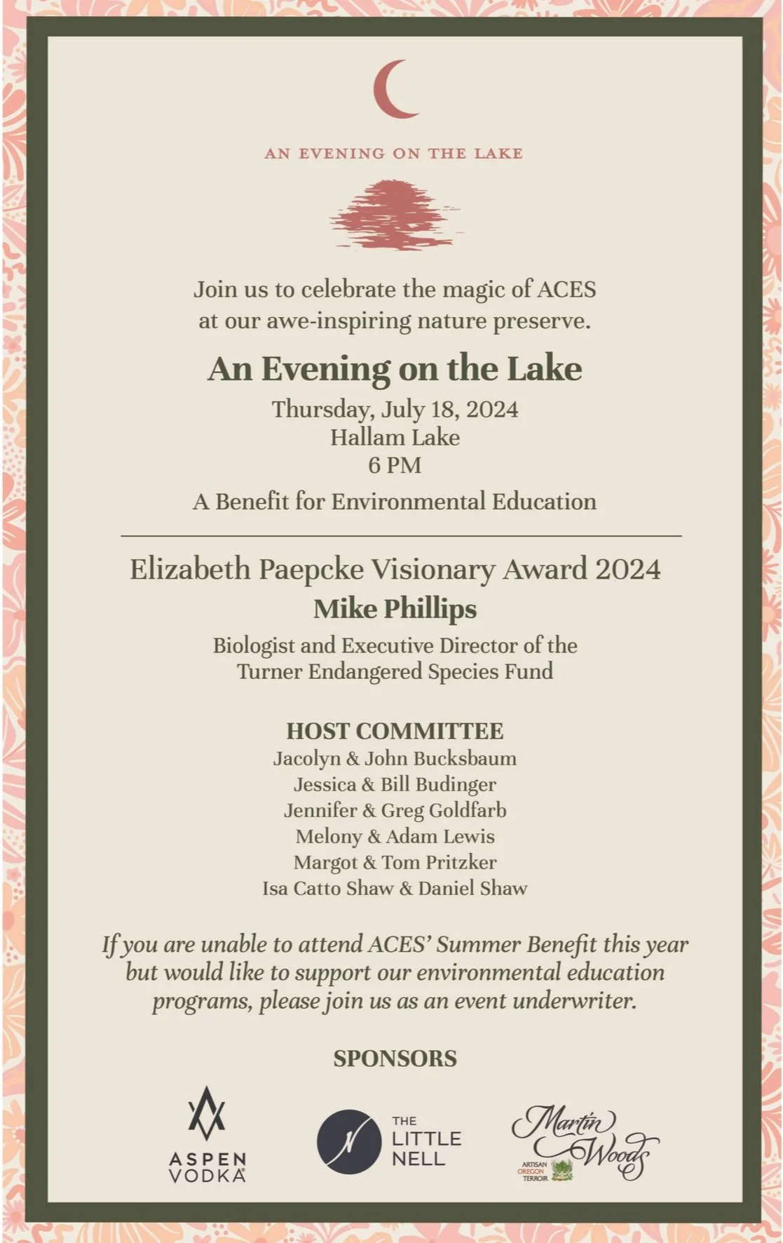 If you have questions about the benefit, please reach out to Raychl Keeling, ACES Events Manager, at rkeeling@aspennature.org.
