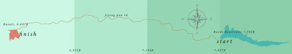 After a ¼ mile on a dirt road, the racers will descend approximately 1,000 feet in elevation, along the Frying Pan Road (paved) and finish in downtown Basalt at Lions Park. There will be three aid stations along the way and each mile is clearly marked. CAUTION: This road will be open to traffic, racers should run single file or on the shoulder when they encounter oncoming vehicles. No cutting tangents is allowed and runners will be instructed to stay on the left facing traffic the entire course.