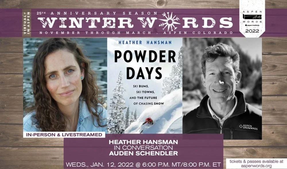 Join us for a conversation with veteran ski journalist and environmental writer Heather Hansman, who will be discussing her new book, “Powder Days: Ski Bums, Ski Towns, and the Future of Chasing Snow,” which takes readers on an exhilarating journey into the hidden history of American skiing and reckons with how the sport is evolving in the face of climate change and rising wealth inequality with Aspen Skiing Company’s SVP of sustainability, Auden Schendler.